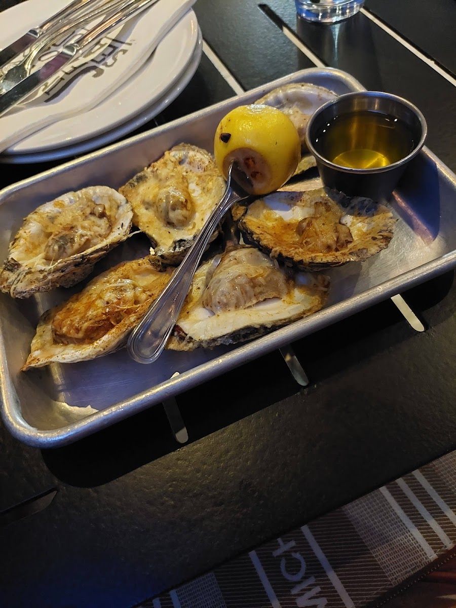 I stopped in on a Monday and saw on the menu there was happy hour all day. (Our host didn’t tell us about happy hour but told several other tables around us which was weird). However, I ordered the Rockefeller oysters which were 10/10. The shrimp skillet with garlic bread was different but pretty good. Mini lobster tails were so tender and perfect. Ordered a Moscow mule which was pretty basic, then a fall cinnamon cocktail that was different but tasty. Crab cakes and broccolini were also 10/10, broccolini was seasoned and spicy which I loved, everything was super fresh and hot off the press! When I return definitely going back to this place, huge menu with plenty options.