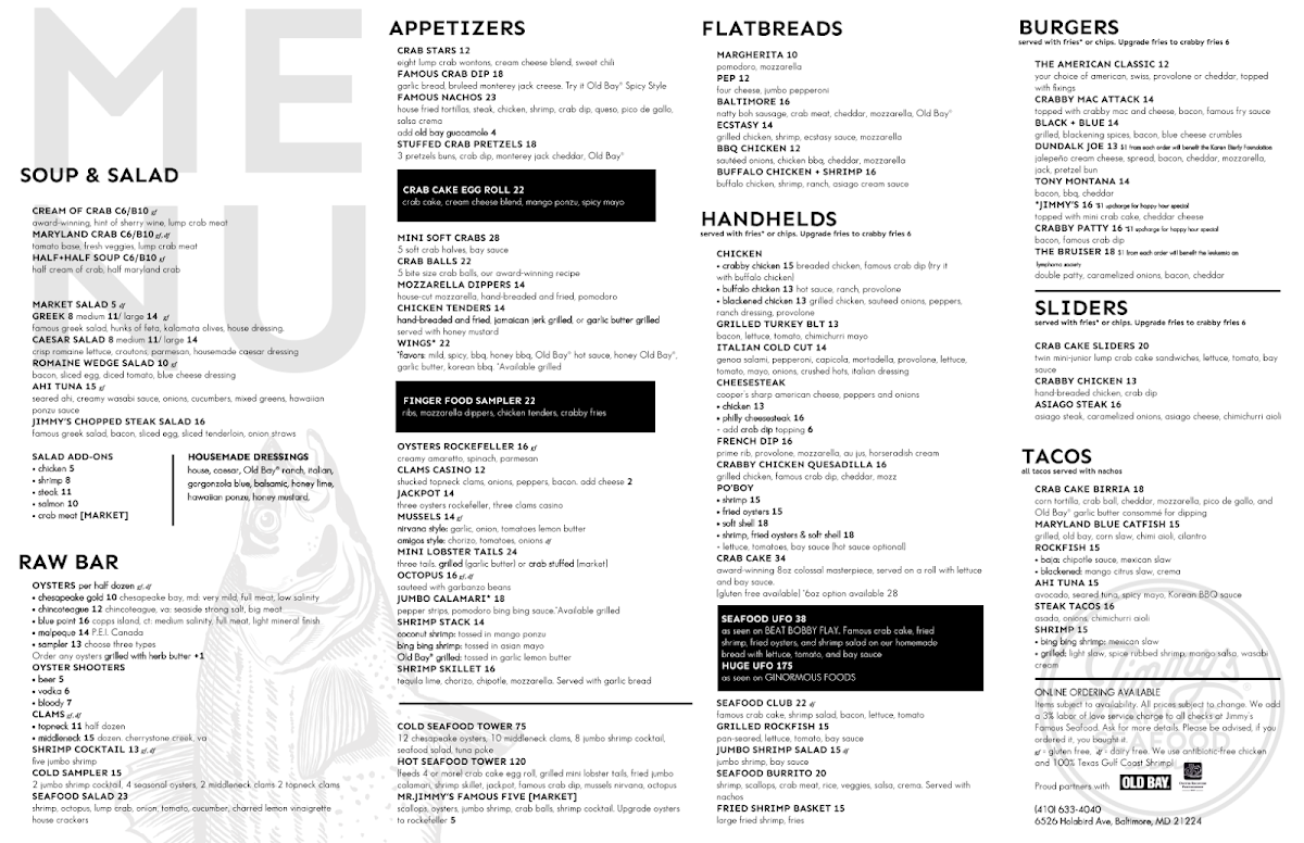 Jimmy's Famous Seafood offers a menu that thoughtfully balances casual comfort with classic seafood flavors, making it easy to enjoy whether you're settling in for a full meal or stopping by for a laid-back bite. The selection reflects the vibrant energy of a seafood spot that also functions as a banquet hall, sports bar, and steak house—providing something for nearly every appetite and occasion.